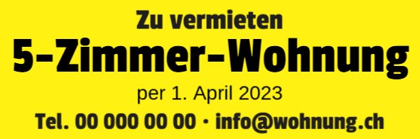 Grösse Banner: 50x150 cm, 87x170 cm, 100x200 cm, 100x300 cm, 100x600 cm, 130x400 cm, 150x900 cm, 174x340 cm, 200x150 cm, 250x200 cm